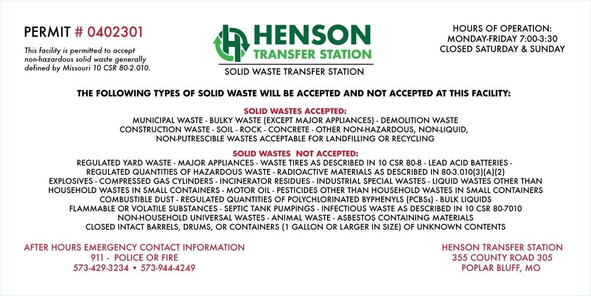 Henson Transfer Station provides a straightforward solution for disposing of construction debris, bulky household items, and general waste. Open to builders, contractors, other haulers, and the general public—whether you're managing a job site or just cleaning out your garage, we're here to make disposal easy.